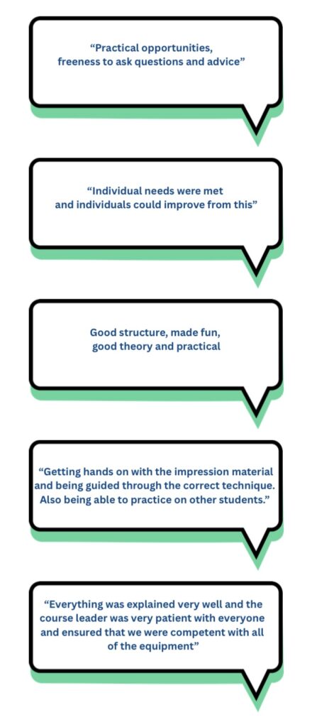 “Thank you for a very good course in impression taking – I learned a lot and had great fun (thanks Louise). ”